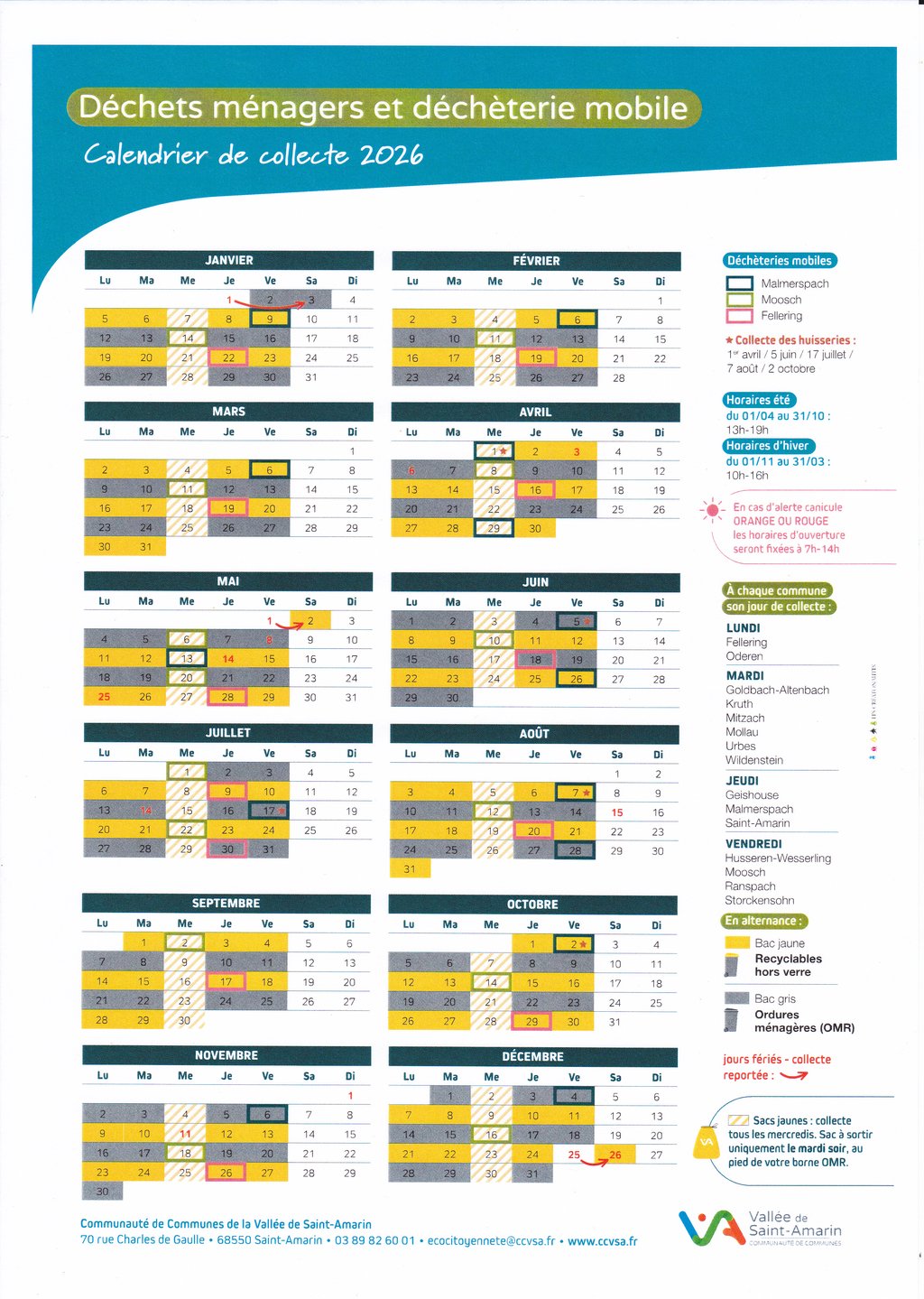 CALENDRIER DE COLLECTE 2026